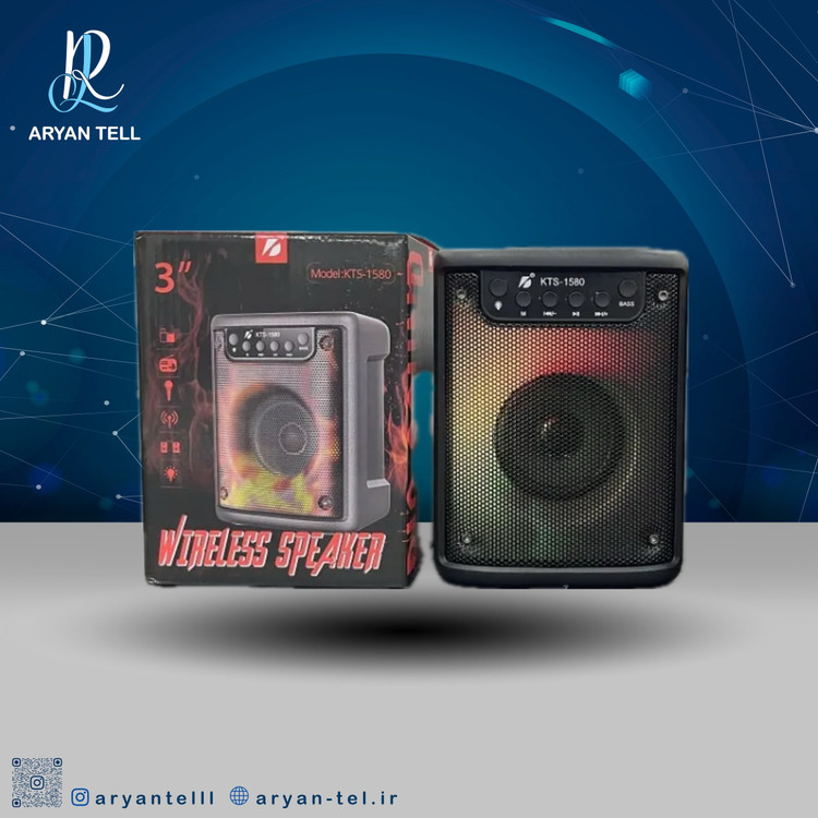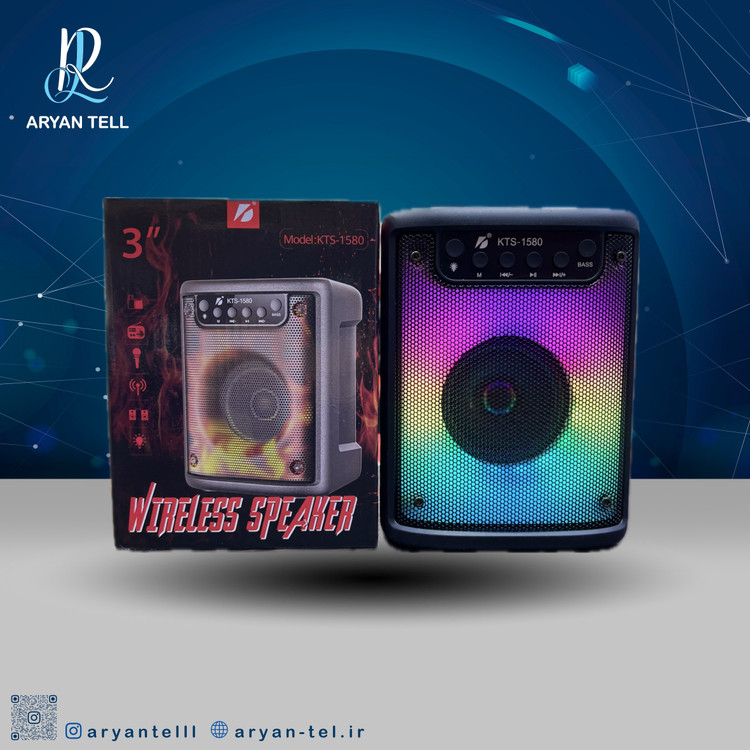 اسپیکر KTS-۱۵۸۰ مجهز به درایو ۳ اینچی با میزان توان خروجی ۱۰ وات،برخوداری از کلید های فیزیکی جهت مدیریت موسیقی، تنظیم ولوم و … مجهز به دسته جهت حمل و جا بجای آسان تر می باشد. تامین انرژی اسپیکر از طریق باتری داخلی با ظرفیت ۱۵۰۰میلی آمپر ساعت قابل شارژ از طریق کابل یو اس بی است.همچنین مجهز به رقص نور زیبا و چند حالته می باشد.