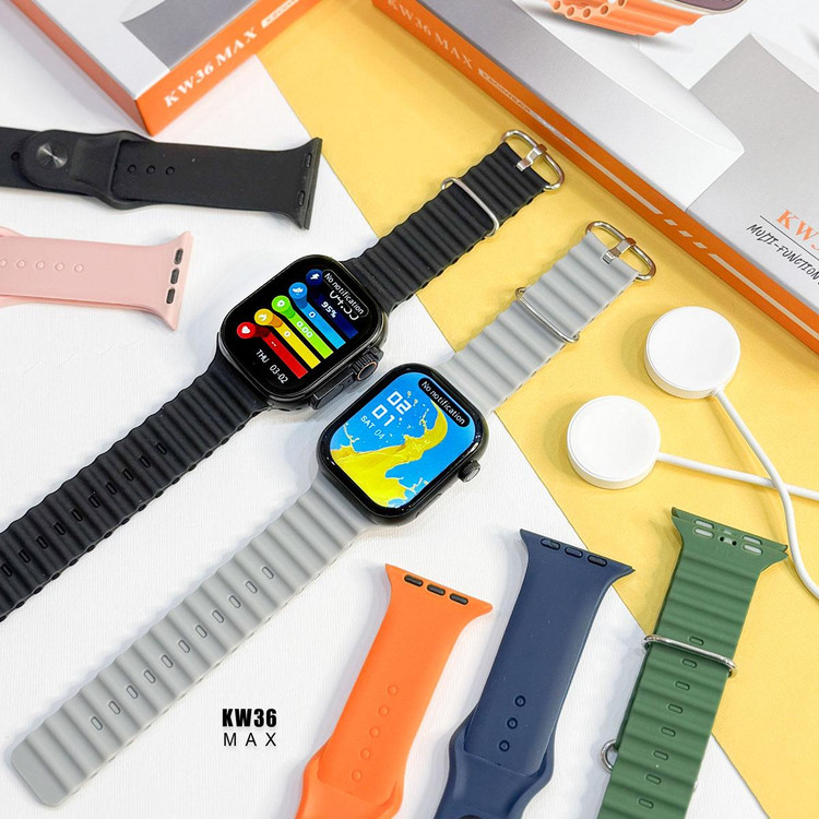 ساعت دوتایی KW36 MAX با هفت بند، یک پکیج شامل دو عدد ساعت هوشمند و هفت بند با رنگها و جنسهای مختلف است. این ساعتها دارای قابلیتهایی مانند مکالمه بلوتوثی، پایش ضربان قلب و فشار خون، و حالتهای ورزشی هستند. همچنین، این ساعتها دارای نمایشگر تمام صفحه رنگی با کیفیت HD هستند و قابلیت نمایش اعلانهای شبکههای اجتماعی را نیز دارند.
